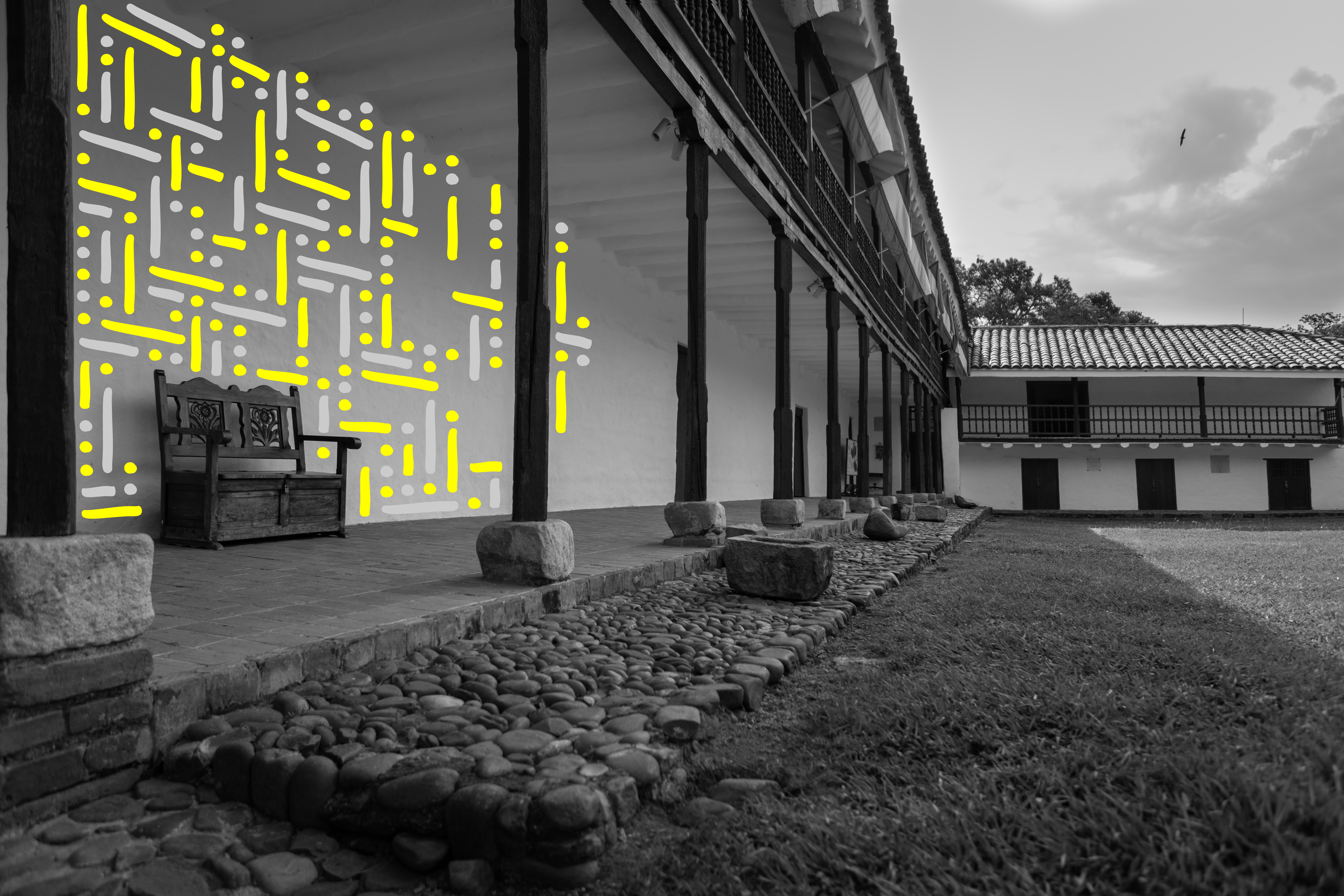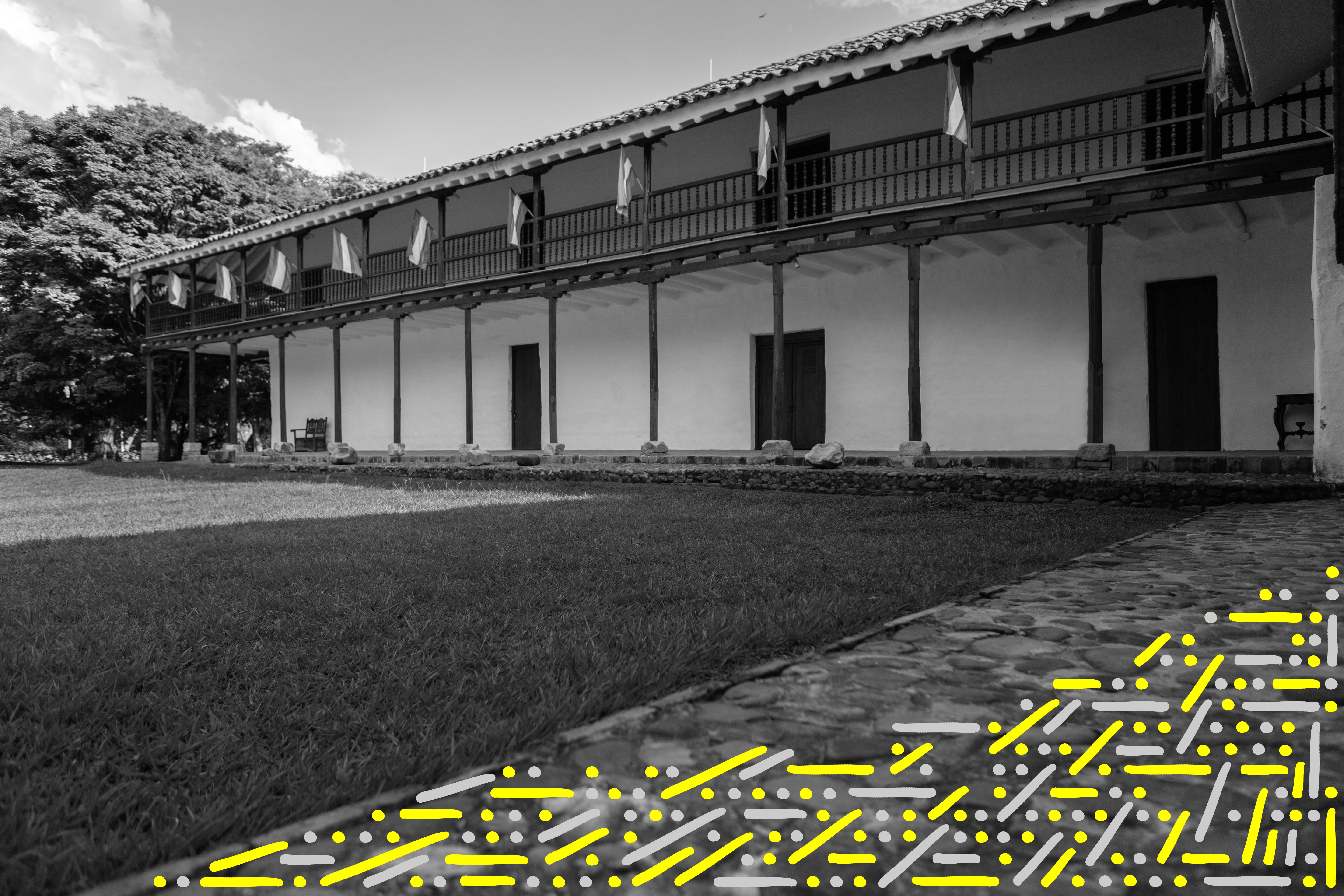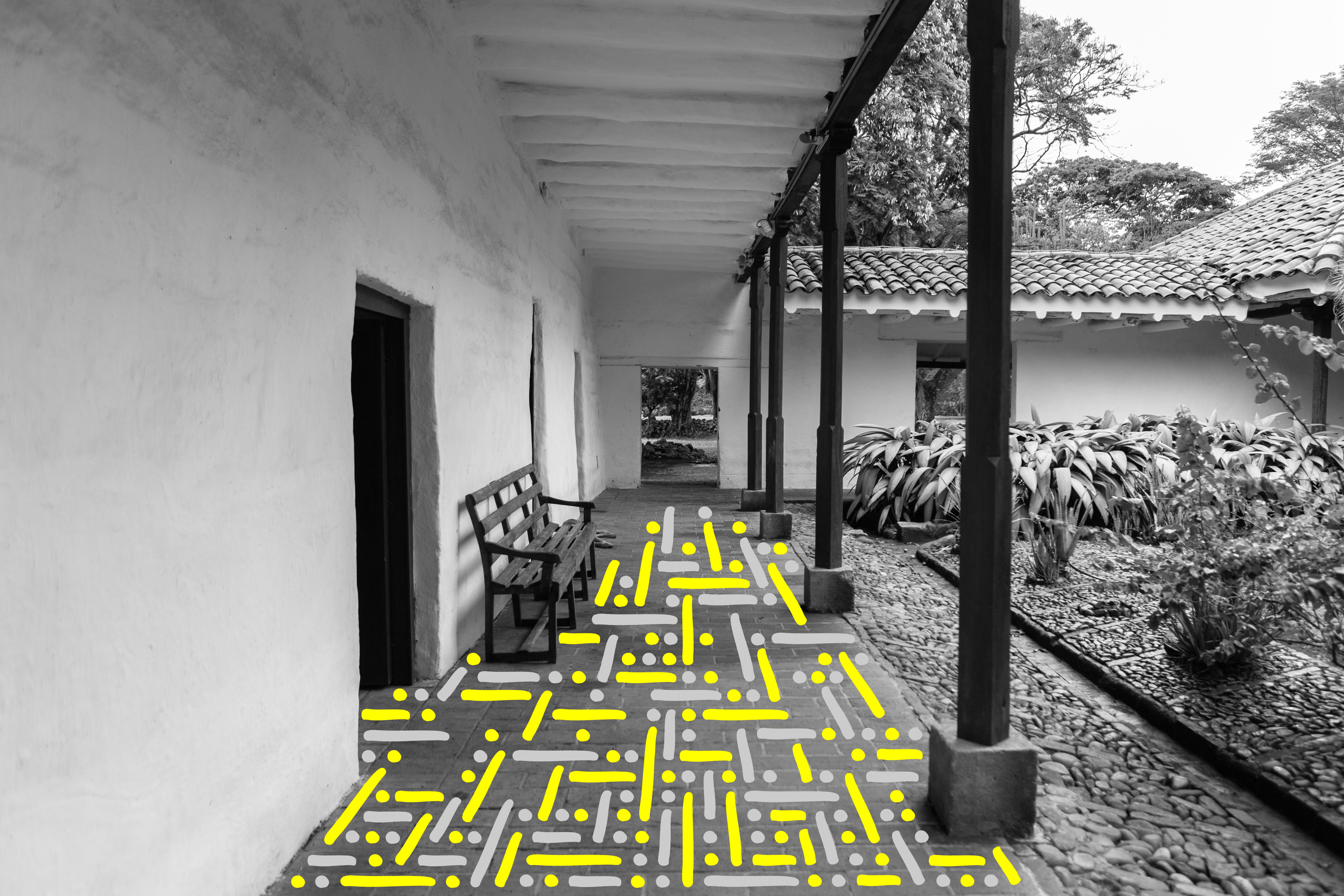 Hacienda Cañasgordas [Cali, Colombia] - A journey through its windows and doors Photography Series is composed by 10 black and white photographs digitally intervened with Dots and Lines. Each photograph comes in 2 formats: size 17” X 22” or size 36” X 54”. Each format comes in a Limited Edition of 5 + 2AP. The sales of this series benefit the Hacienda Cañasgordas Foundation