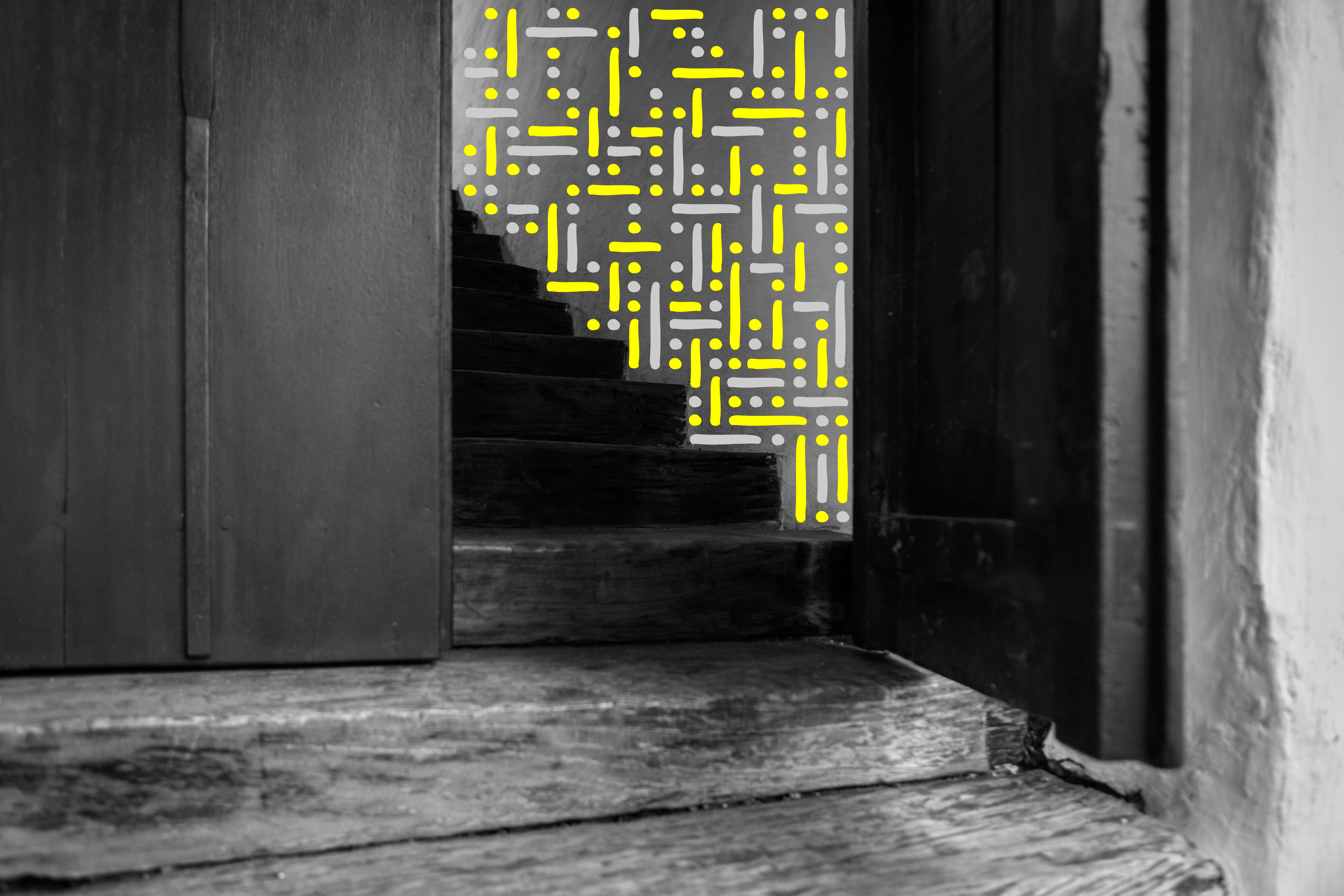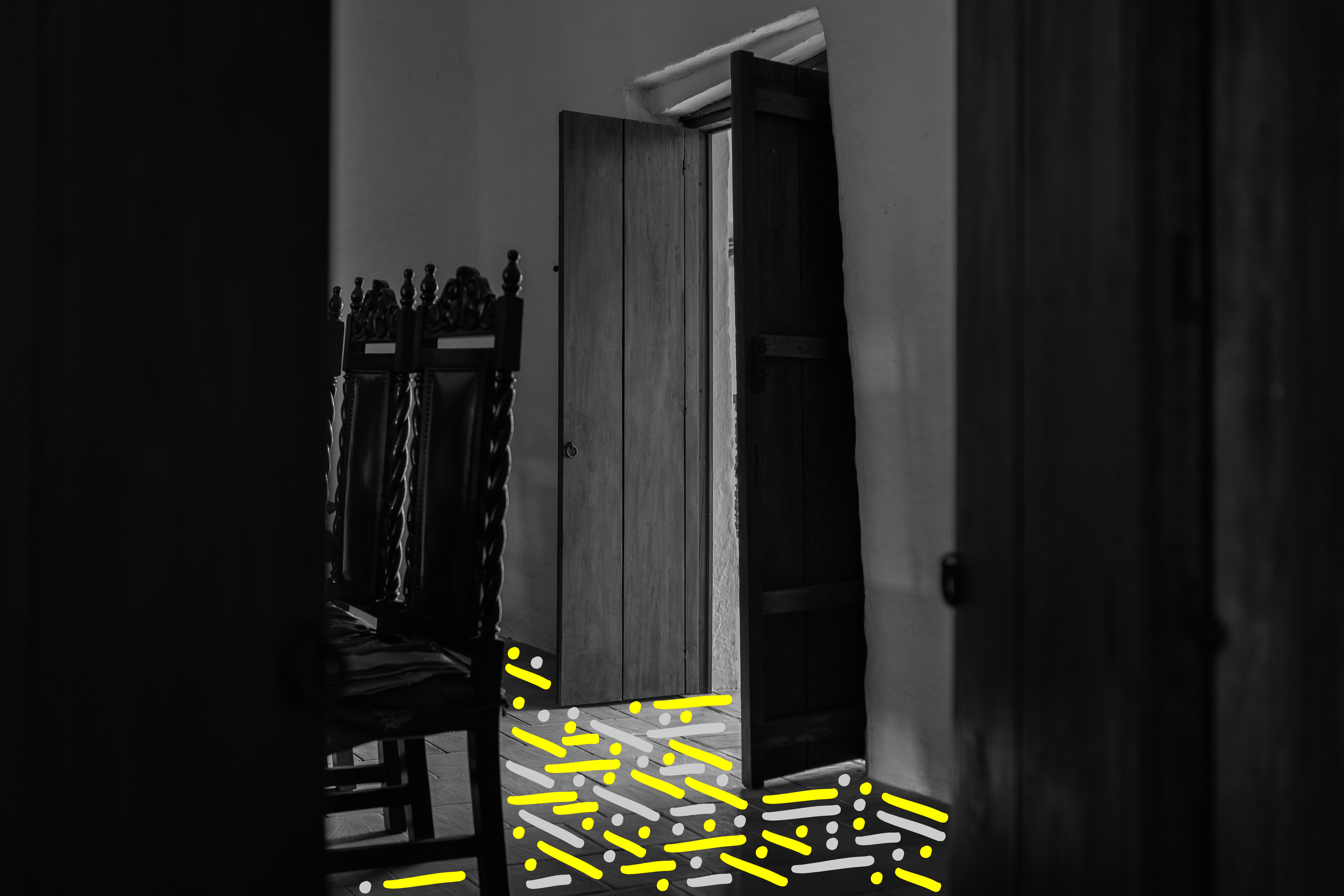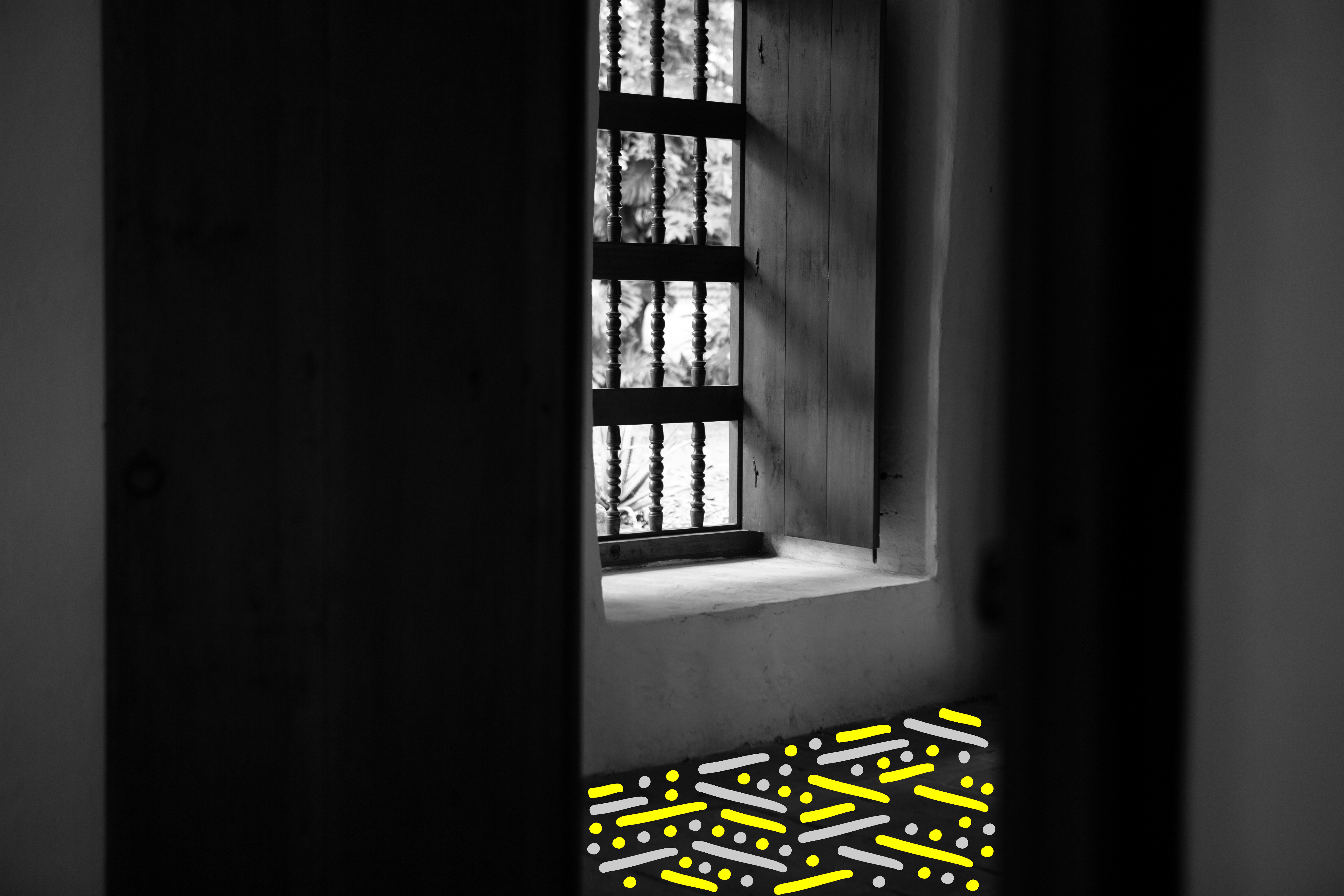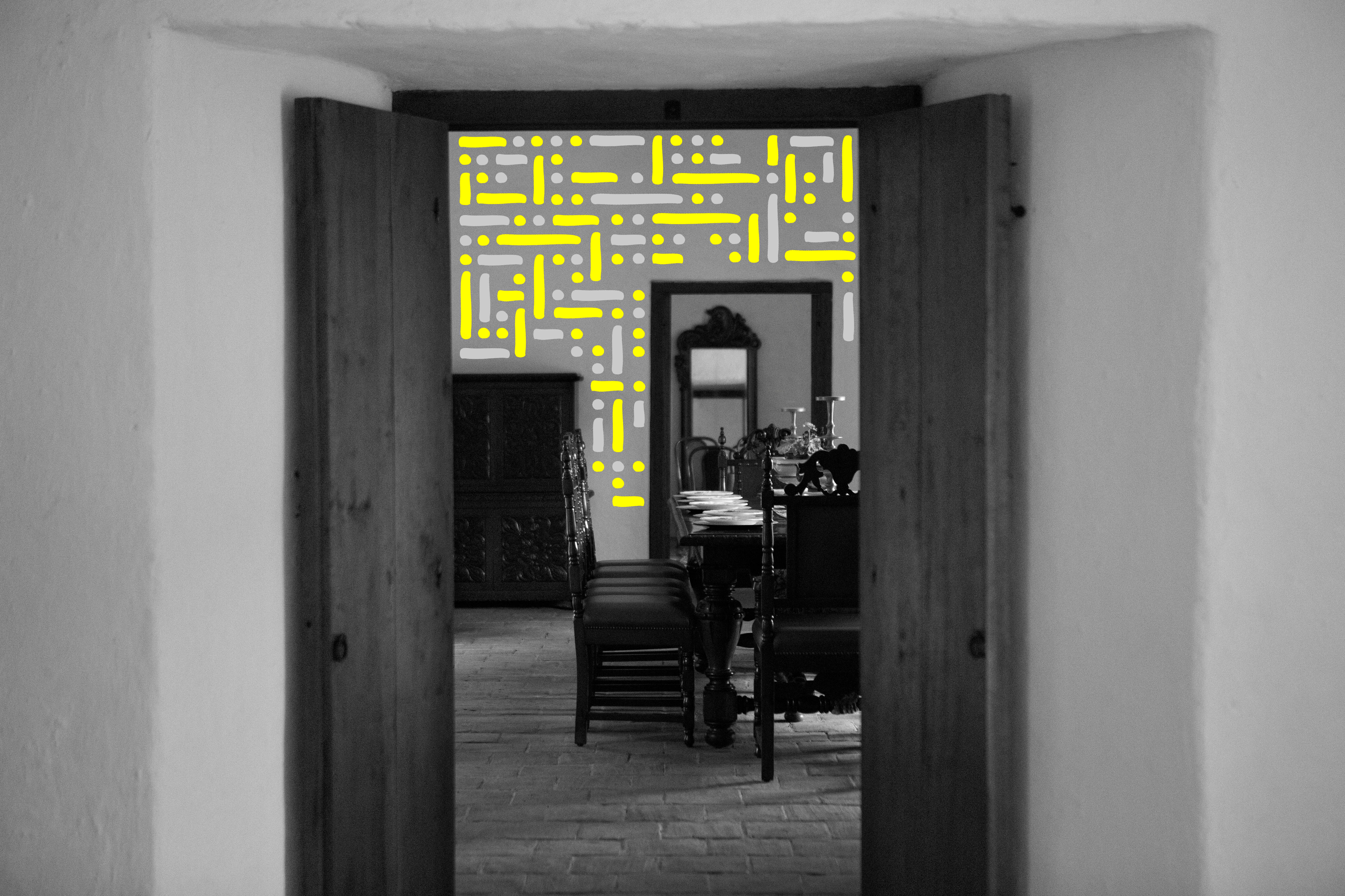 Hacienda Cañasgordas [Cali, Colombia] - A journey through its windows and doors Photography Series is composed by 10 black and white photographs digitally intervened with Dots and Lines. Each photograph comes in 2 formats: size 17” X 22” or size 36” X 54”. Each format comes in a Limited Edition of 5 + 2AP. The sales of this series benefit the Hacienda Cañasgordas Foundation
